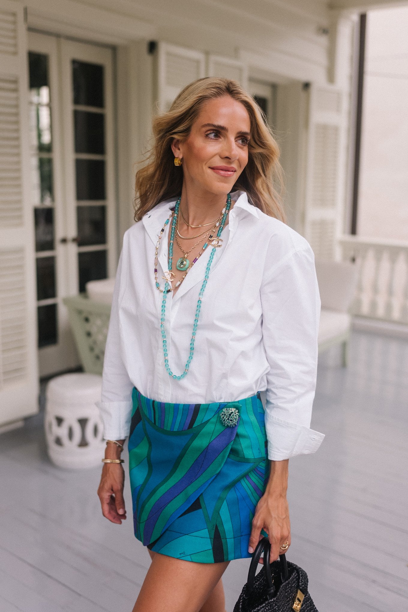 Julia Amory Top, Pucci Skirt, Hermes Sandals, Ferragamo Bag, Chanel & Retrouvai Necklaces (similar here and here) This summer’s jewelry leans into contrast with warm golds, offering a sleek counterpoint to sun-warmed skin, while natural stones and resins bring a grounded richness that feels...