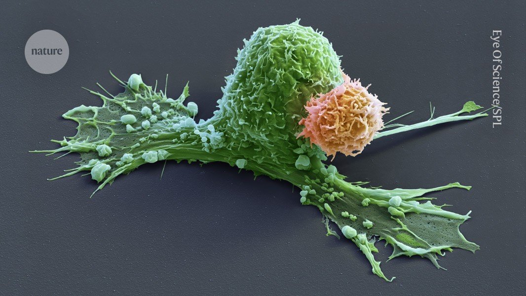 A CAR-T cell (orange) has attacks a cancer cell (green), which is starting to contract.Credit: Eye Of Science/Science Photo LibraryThe girl was four years old when she arrived at Texas Children’s Hospital in Houston to receive a highly experimental therapy...