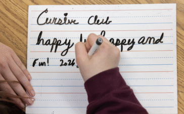“I prefer writing in cursive,” Halle said. The pair are proud members of the Holmes Middle School cursive club in...