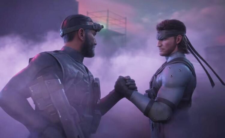 The reveal trailer shows Snake doing Snake stuff like hiding around corners and taking enemies out with a silenced weapon before sending in a smoke grenade and handing out takedowns. Sam Fisher pops up at the end, the two embrace Predator-style, and Snake quips about “soldiers like us” never getting a moment’s rest as a new alert pops up on his pager.