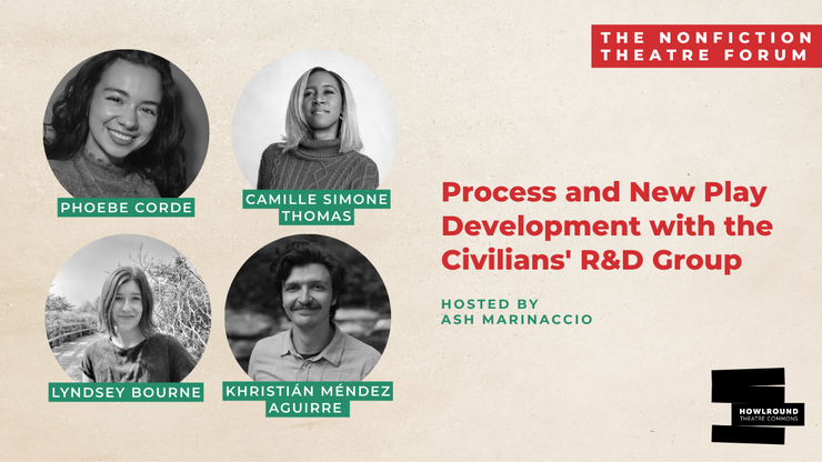 By Ash Marinaccio, Camille Simone Thomas, Khristián Méndez Aguirre, Lyndsey Bourne, Phoebe Corde. Ash Marinaccio and the 2024-2025 Civilians R&D Group discuss investigative theatre, how artists blend research, interviews, and emotional truth to create new work.