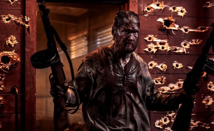 Now Korpi is back for Helander’s sequel Sisu: Road to Revenge, set in post-war 1946. At its heart is the wooden house once shared by Korpi with his beloved wife and two young sons (before they were slaughtered by Russians), but located in Karelia which has now fallen under Soviet occupation. So with his trusty white poodle, Korpi returns there in a big truck to dismantle his home single-handedly, timber by timber, so that he can take it back to Finnish territory for reassembly. Getting word of Korpi’s presence, a KGB officer (Richard Brake) unleashes mad-dog war criminal Igor Draganov (Stephen Lang) to finish what he had started and to take out the last surviving Korpi, ending the myth of his immortality. Yet faced with cars, tanks, bikers, fighter jets, bombers, and speeding, rocket-laden trains, Korpi once again dies very hard.