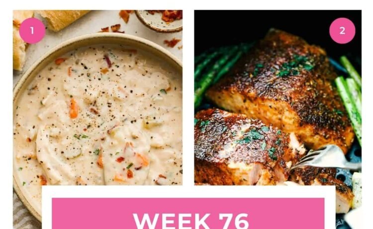 Don’t like something on the menu? Don’t worry! I have a new weekly meal plan each week, and you can switch out any meals you want! If you want to receive all of the meal plans, sign up for my newsletter here!
