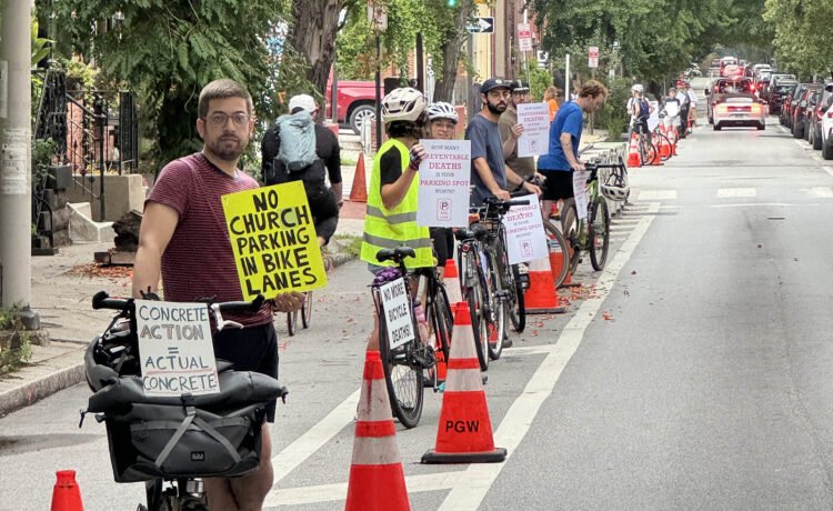 That drew the ire of Philly Bike Action, which staged 18 weeks of what organizers called “bike lane parties” in front of the church on Sundays, where cyclists often held signs of protest and took photos of church members parked in bike lanes.